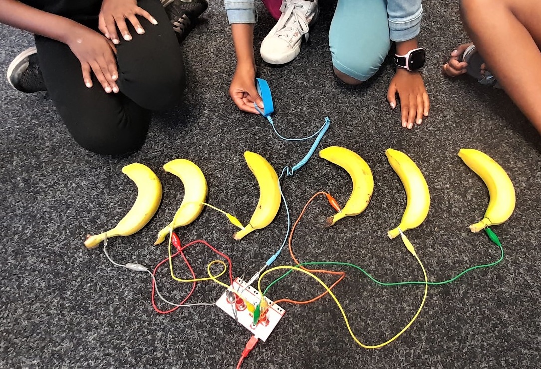 MaKey MaKey ist eine Platine, mit der sich leitfähige Objekte in Computertasten umwandeln lassen. In kürzester Zeit lassen sich Musikinstrumente, Computerspiele und vieles mehr herstellen! Ohne Anmeldung ab 8 Jahren.